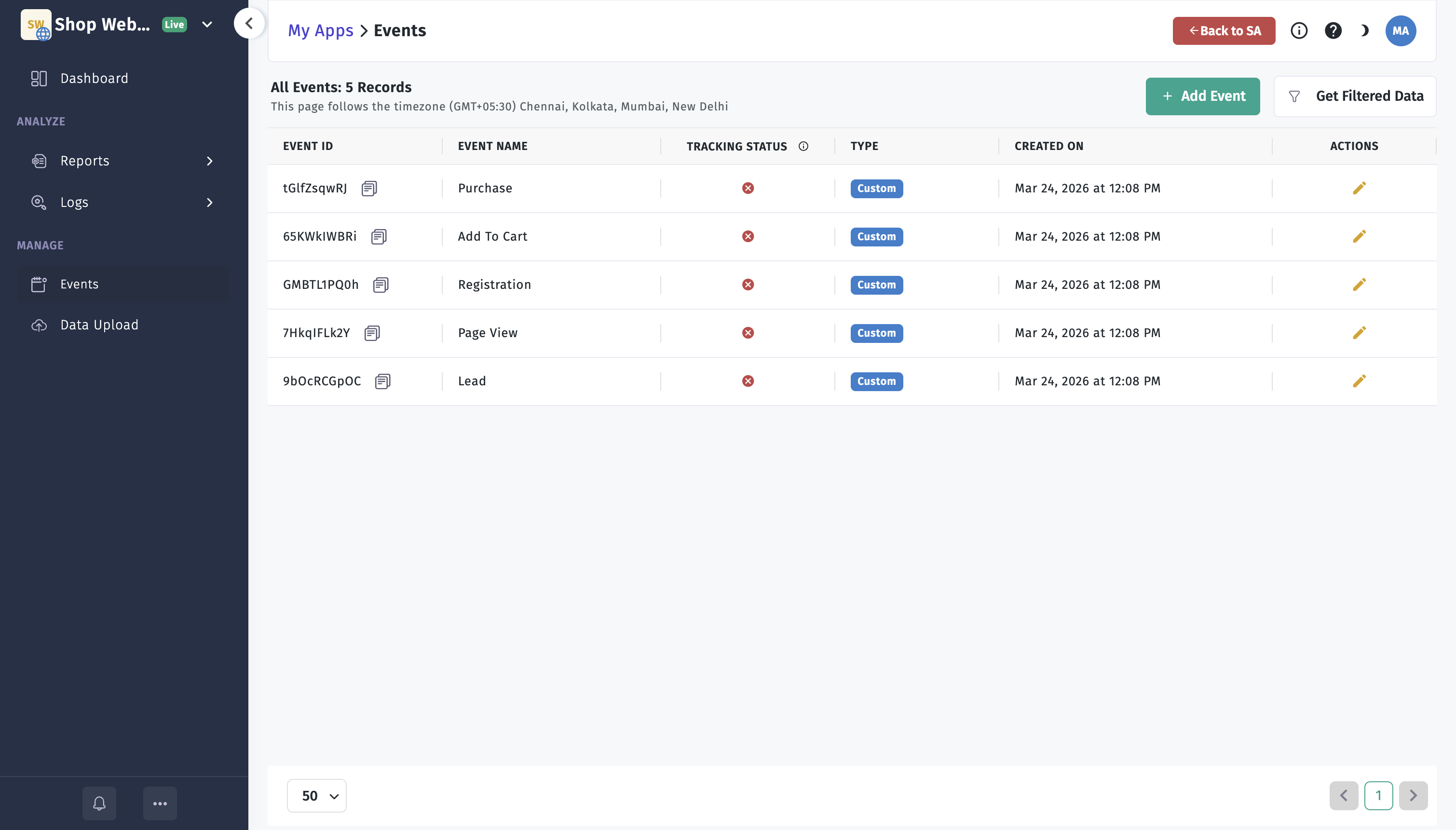 Events Dashboard — Apptrove: